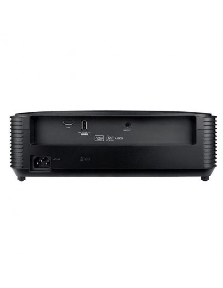 Em termos de funcionalidades, o projetor integra uma lente de foco standard, facilitando a instalação e configuração. As ligações incluem uma entrada HDMI, permitindo conectar facilmente dispositivos como leitores de Blu-ray, consolas de jogos ou computadores. Para uma experiência ainda mais completa, a conectividade Wi-Fi é opcional, permitindo transmitir conteúdo sem fios a partir de dispositivos compatíveis.