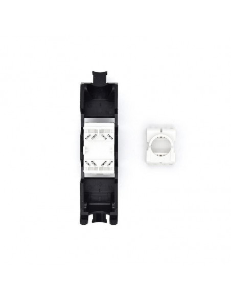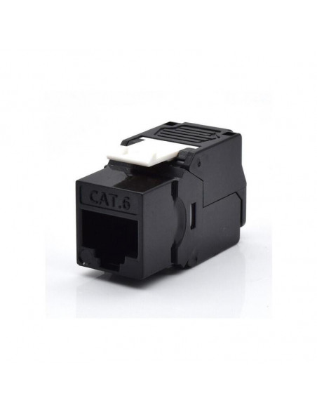 O design plano e compacto do conector facilita a integração em qualquer ambiente, sem ocupar muito espaço na sua parede. A sua cor preta confere-lhe um aspeto discreto e moderno, integrando-se harmoniosamente em qualquer decoração. O conector é compatível com cabo Cat6, proporcionando um excelente desempenho de transmissão de dados e alta velocidade na sua rede.