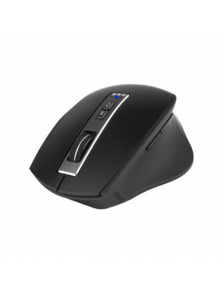 Rato sem fios NGS Blur-RB com ligação tri-modal (2,4 GHz, Bluetooth 3.0 e 5.0), permitindo a ligação simultânea a 3 dispositivos e comutação rápida entre eles. Sensor laser de alto desempenho com DPI ajustável (800/1600/3200). Bateria recarregável via USB-C com autonomia até 50 horas. Design ergonómico para destros. Inclui 6 botões e roda de metal. Preto.