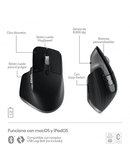 Em suma, o Logitech MX Master 3S For Mac combina desempenho excecional, design ergonómico e funcionalidades inteligentes, tornando-se na ferramenta ideal para quem procura um mouse sem fio de alta qualidade, compatível com Mac. Para mais informações, consulte o website oficial da Logitech.
