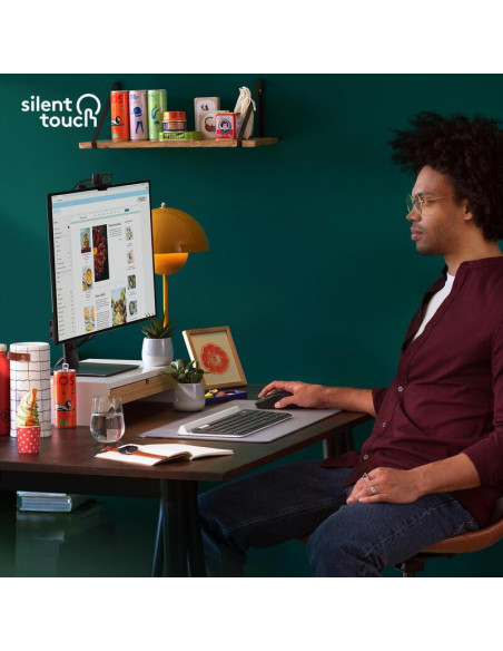Uma das principais vantagens do Signature M650 é a compatibilidade com a tecnologia Logitech Flow. Esta tecnologia permite-lhe controlar múltiplos computadores simultaneamente, movendo o cursor entre eles sem esforço e copiando e colando ficheiros entre os diferentes sistemas. Este recurso torna o seu fluxo de trabalho significativamente mais eficiente, simplificando as tarefas e aumentando a produtividade.