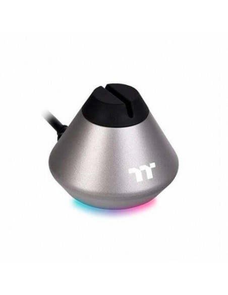 Suporte para cabo de rato Thermaltake Argent MB1 RGB com iluminação RGB inferior personalizável. Design em forma de gota de água com base em borracha antiderrapante. Compatível com a maioria dos cabos de rato. Oferece 8 efeitos de iluminação dinâmica. Integração com software TT RGB PLUS e Razer Chroma.