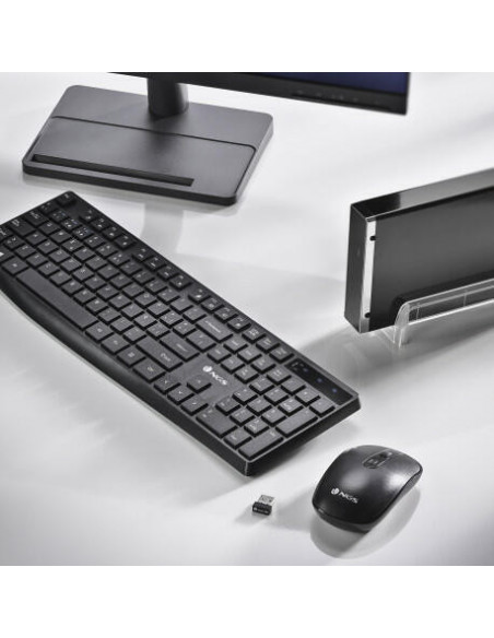 WIRELESS MULTIMODE KEYBOARD + MOUSE SET TECLADO - Teclado sem fios que oferece três tipos de conexão (BT4.0 + BT4.0 + 2.4GHz sem fios): Permite trabalhar com 3 dispositivos ao mesmo tempo e alternar rapidamente de um para o outro pressionando o seletor de modo. - Possui dois canais para a conexão BT 4.0, com uma cobertura de 10M e uma reconexão automática. - Inclui um canal para USB Dongle de 2,4GHz com uma conexão poderosa e fiável - Vem incorporadas 12 teclas de acesso direto multimédia. - Compatibilidade universal: suporta todos os dispositivos equipados com Bluetooth ou ligação USB - Traz indicadores LED para letras maiúsculas, modo e nível de bateria fraca. - Ele também incorpora um design minimalista e resistente a respingos, com apro(...)
