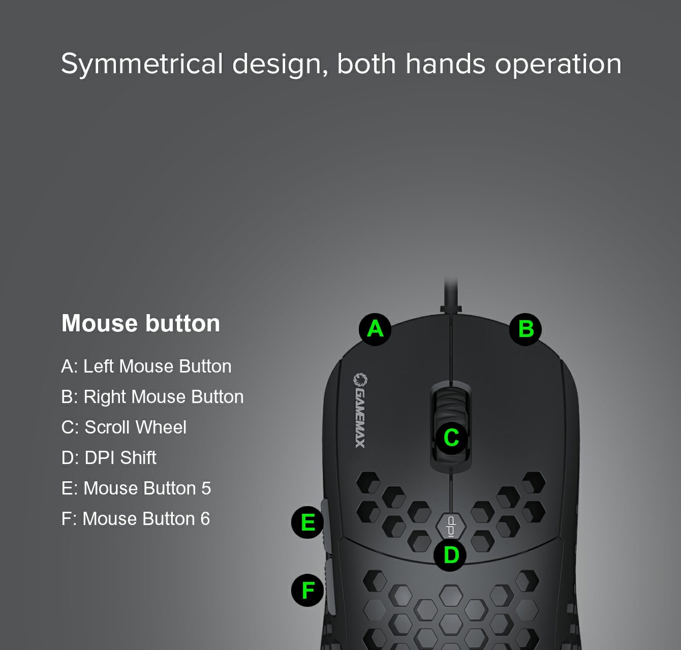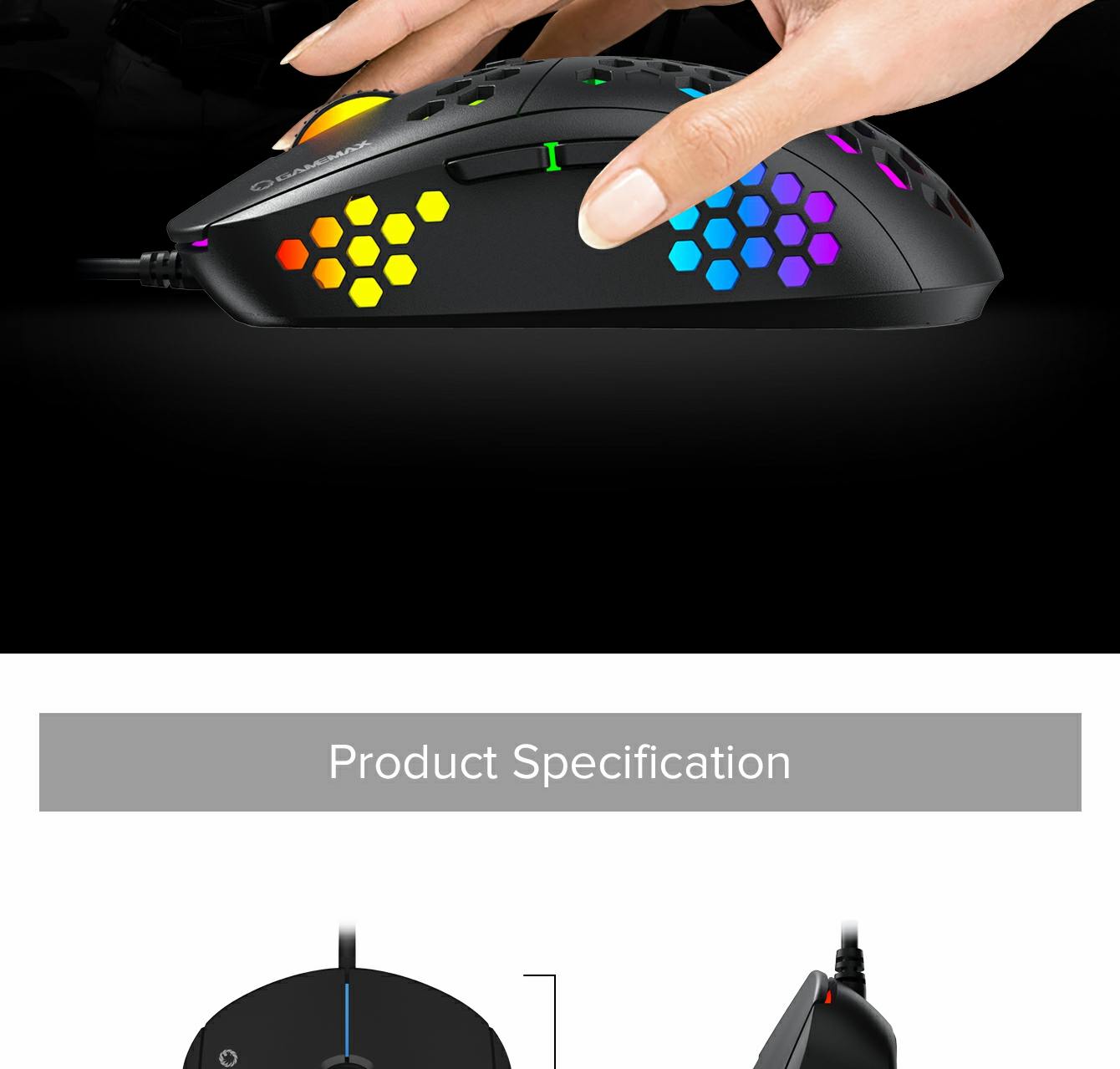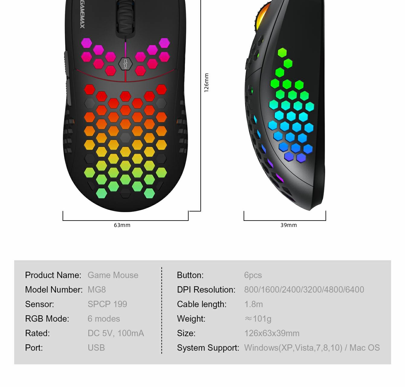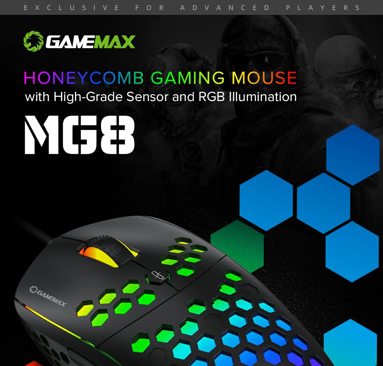 Rato Gamemax MG8 Gaming 6400dpi - Sensor Óptico, RGB, Design Favos, USB