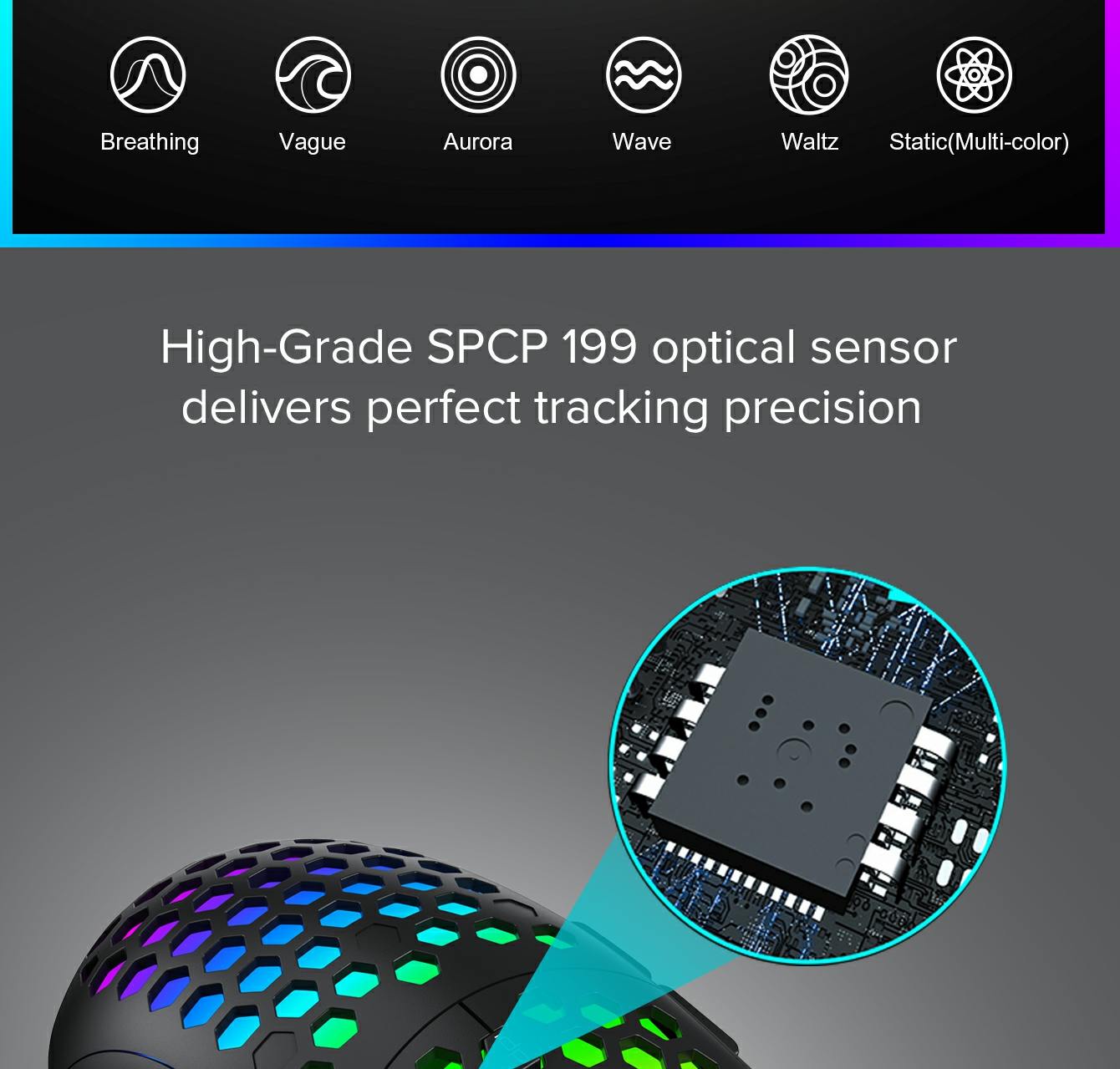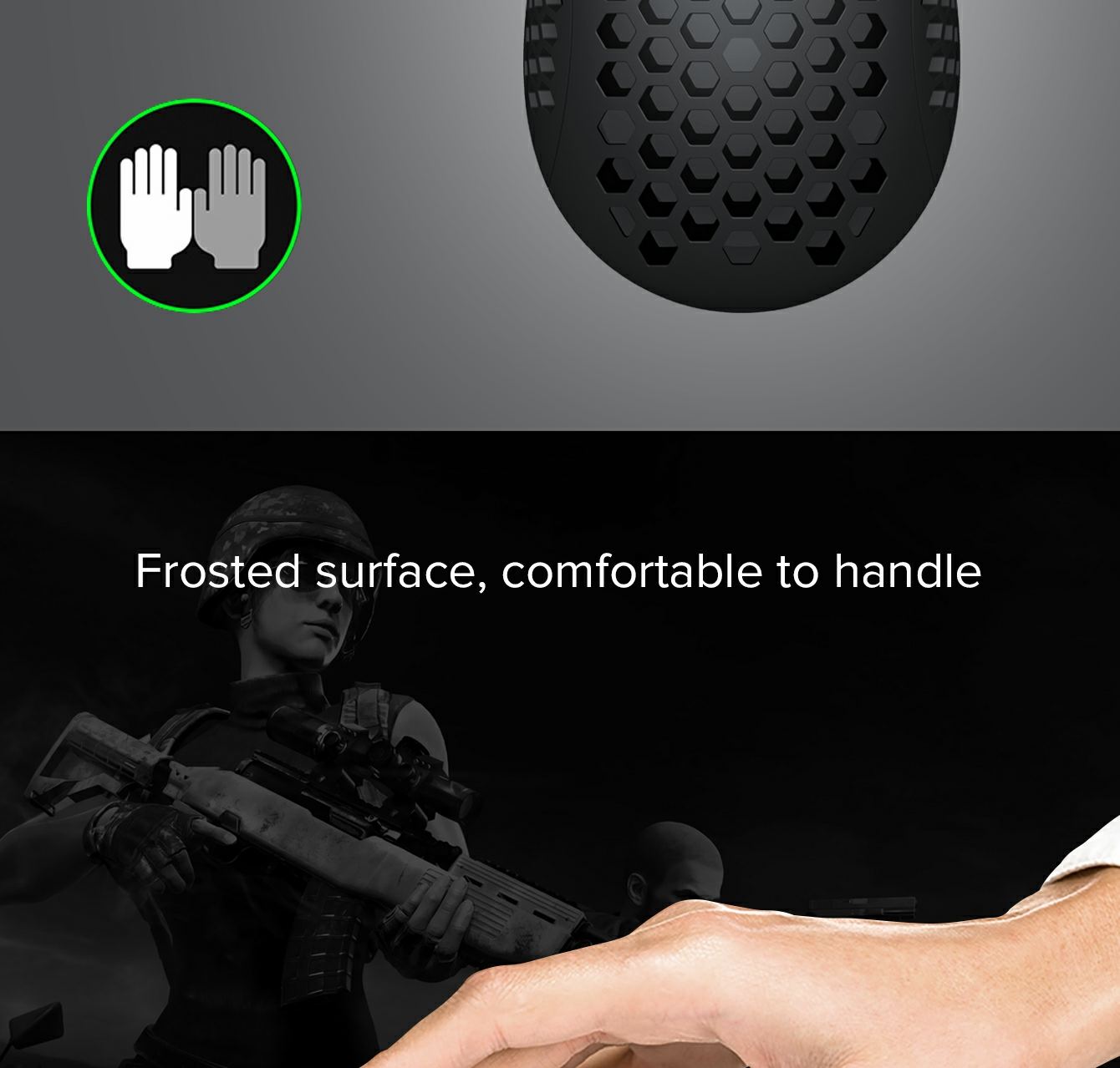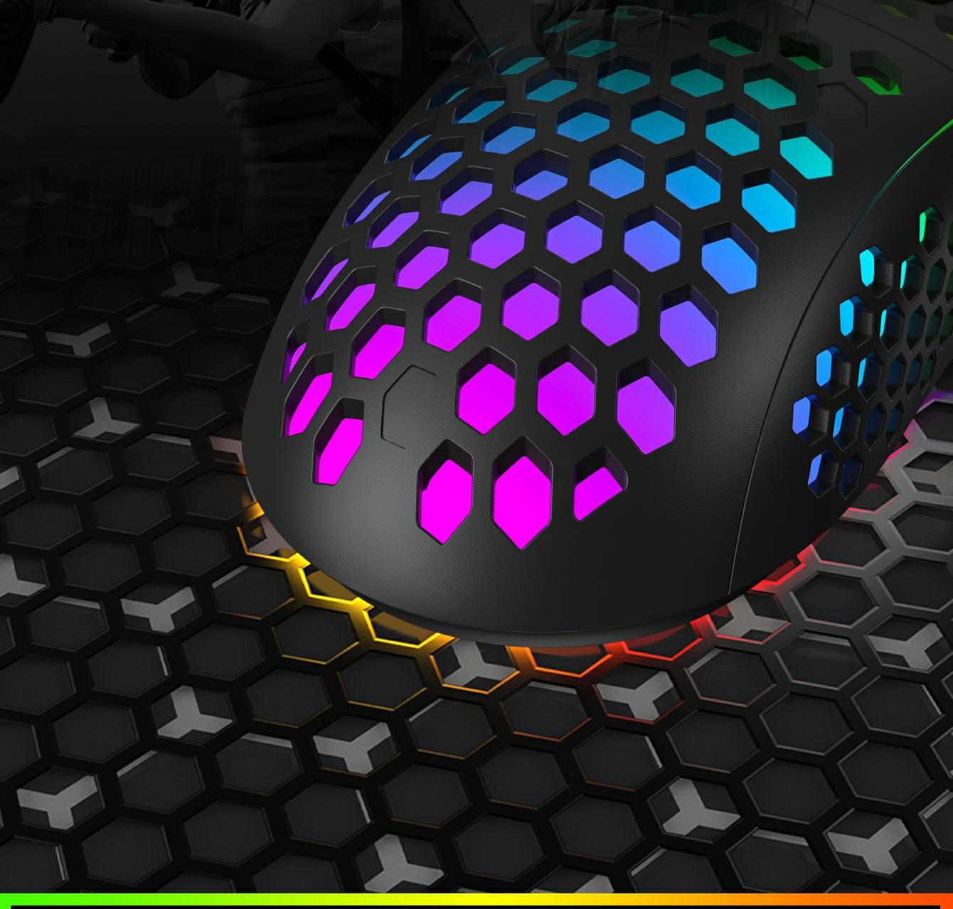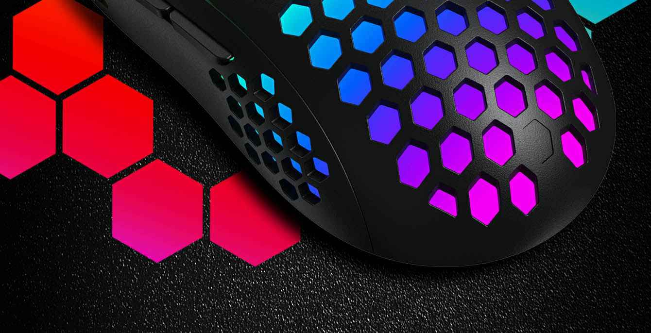 A estrutura leve em forma de favo de mel foi concebida para ser extremamente durável e leve, garantindo que pode jogar por mais tempo sem sentir fadiga. O cabo ultraleve entrançado reduz significativamente o peso e a fricção, o que permite movimentos mais rápidos e precisos. Os pés do rato em PTFE garantem um controlo suave com baixo atrito e deslizamento consistente, tornando-o ideal para sessões de gaming intensas.