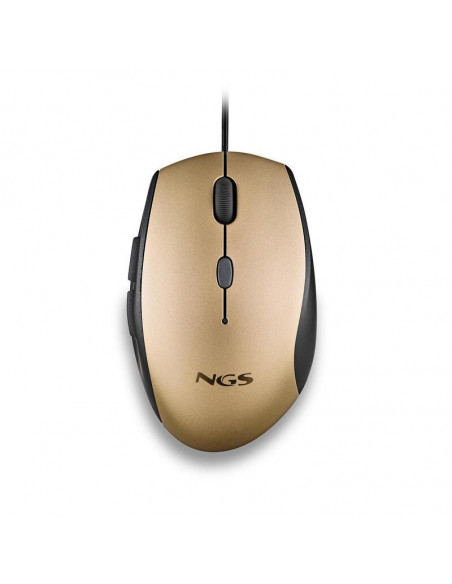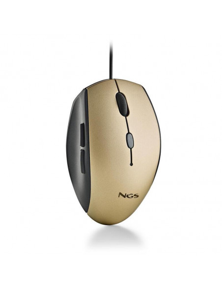 Rato NGS Moth Gold: Rato ergonómico com fio, 1600 DPI, dourado