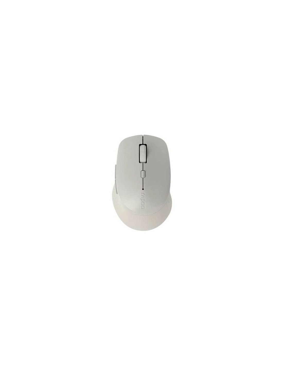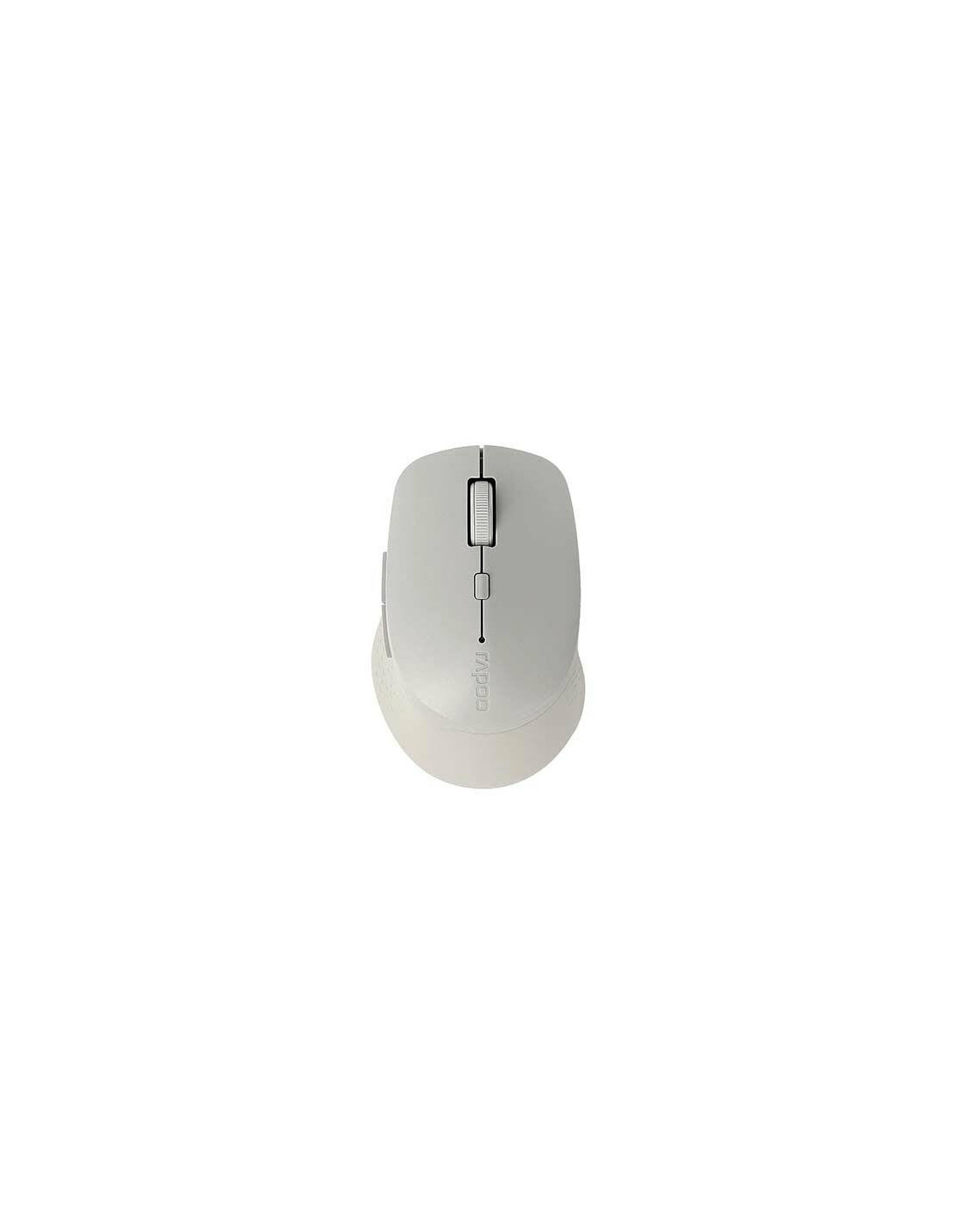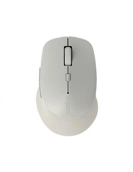 Rato óptico sem fios RAPOO M300 Silent, na cor cinzenta claro.  Utiliza tecnologia Bluetooth 4.0 e 2.4 GHz, com resolução de 1600 DPI.  Funcionalidades silenciosas. Alimentado por pilha AA.