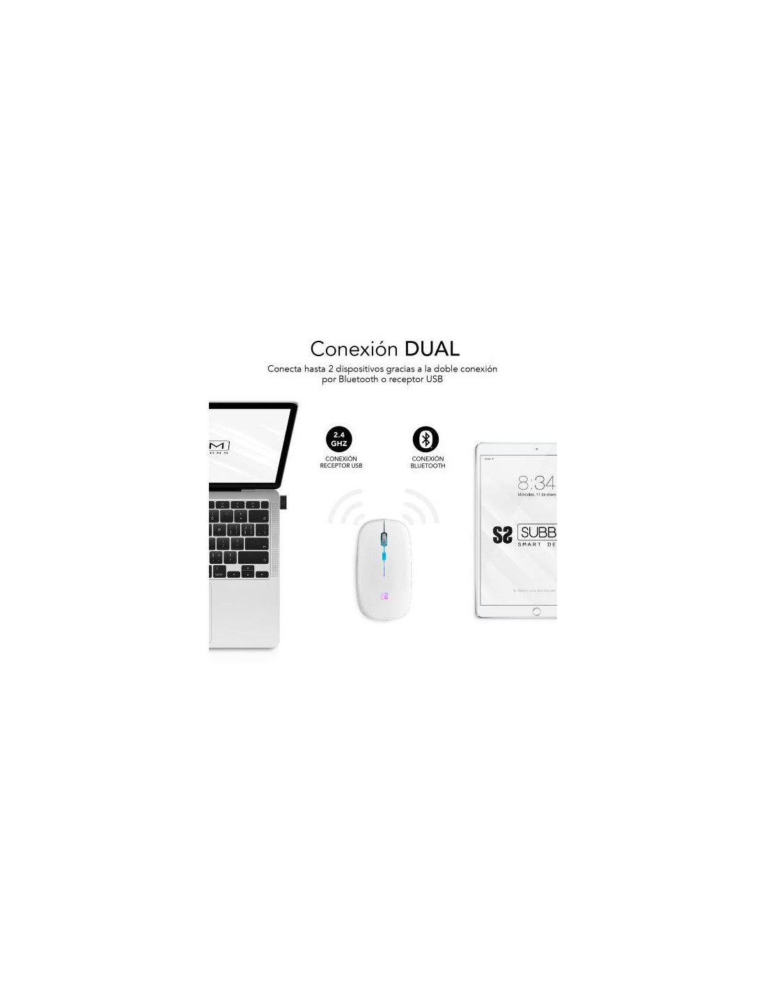 Rato Subblim Dual Flat Mouse: Óptico, Sem Fios (2.4G/BT), RGB