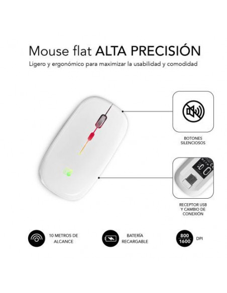 O rato óptico sem fios Subblim Dual Flat Mouse oferece conectividade dupla (2.4GHz e Bluetooth), permitindo a ligação a dois dispositivos simultaneamente. Tecnologia Silent Click para cliques silenciosos. Iluminação RGB com 7 cores que mudam aleatoriamente. Bateria Li-ion recarregável de longa duração. Sensor óptico de alta precisão (1600 DPI).