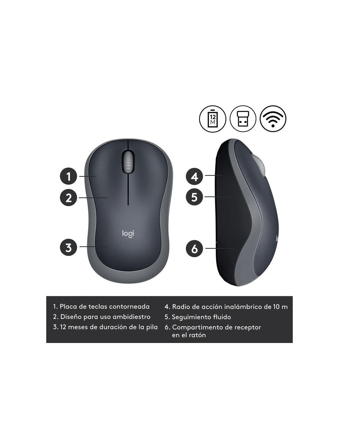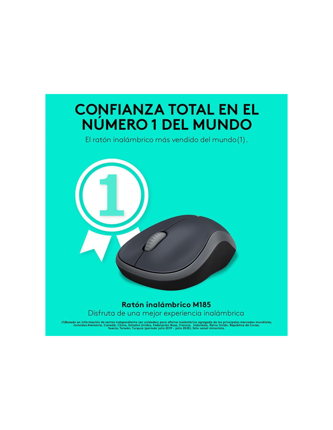 Rato Logitech M185, Óptico Sem Fio, Ambidestro, 1000 DPI, 3 Botões, Cinza