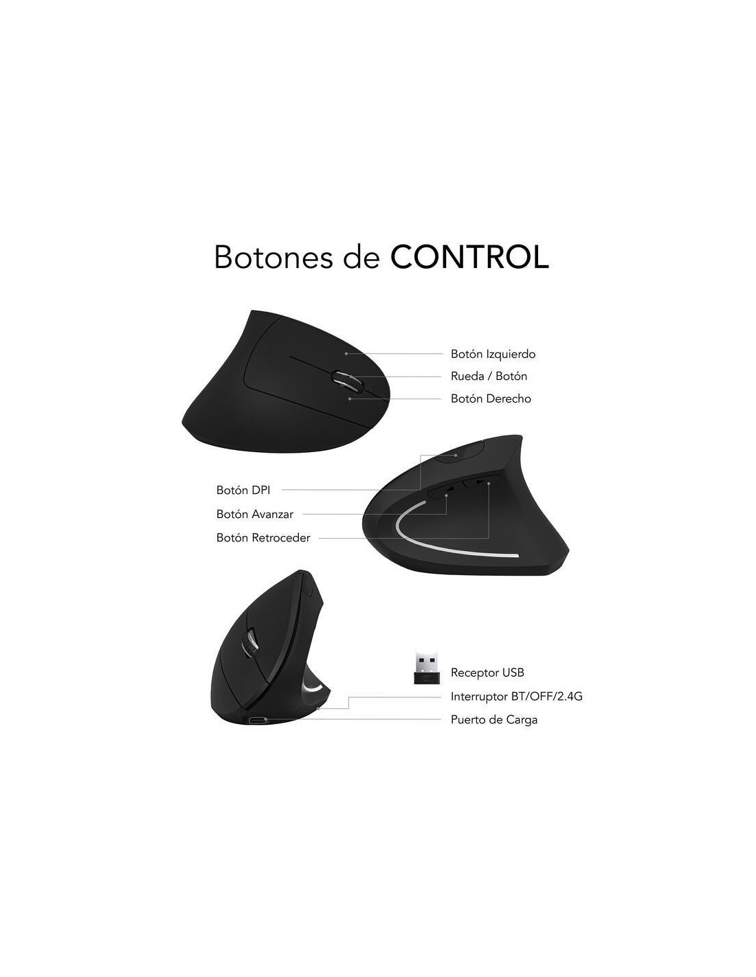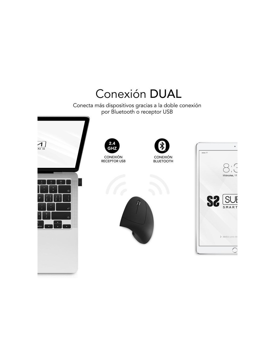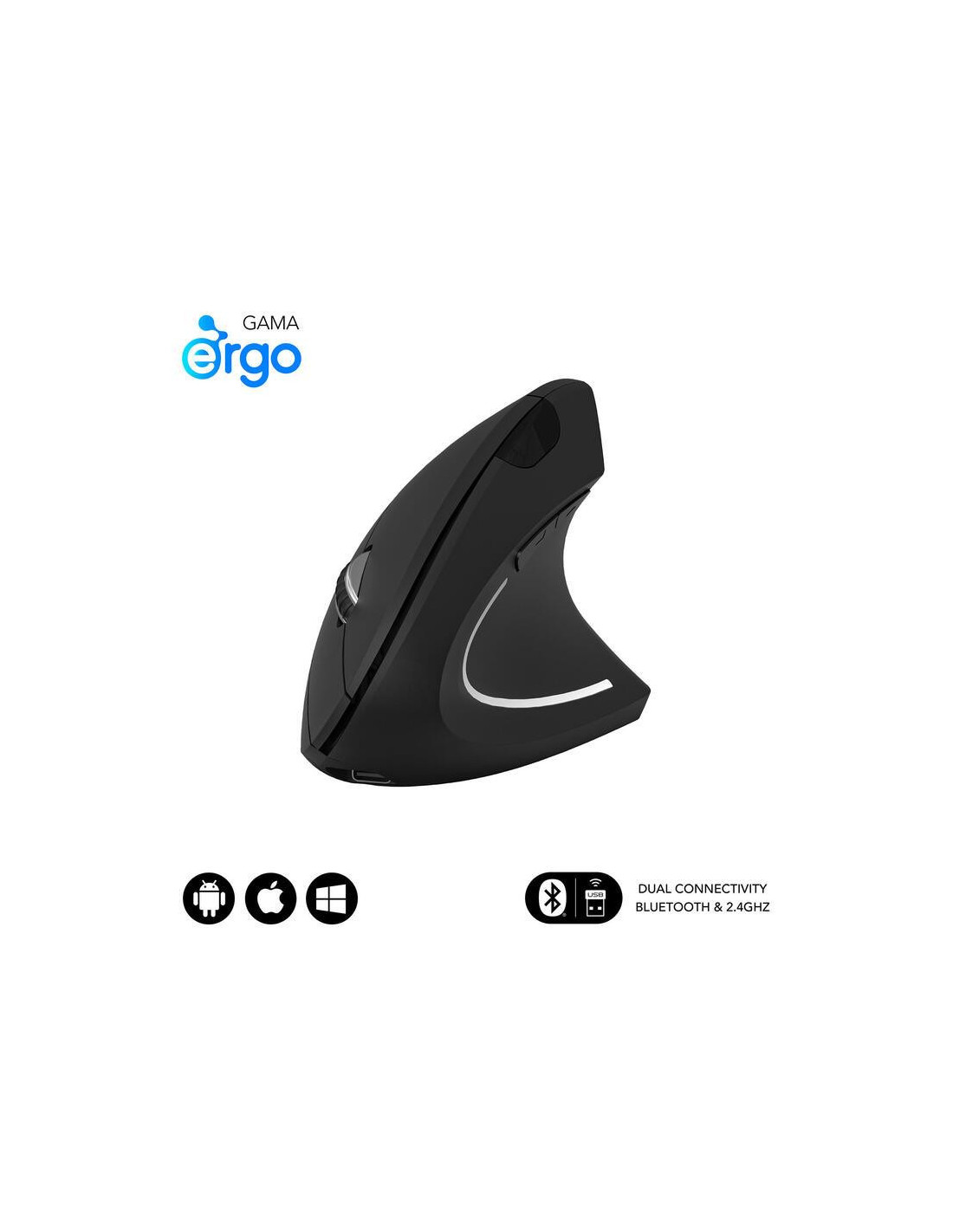 Rato SUBBLIM Glide Vertical Ergo Dual, Preto, Sem Fios, Bateria