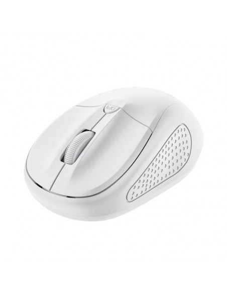 Rato sem fios Trust Primo, branco mate, com sensor óptico de até 1600 DPI. Design compacto e ambidestro, ideal para uso diário.