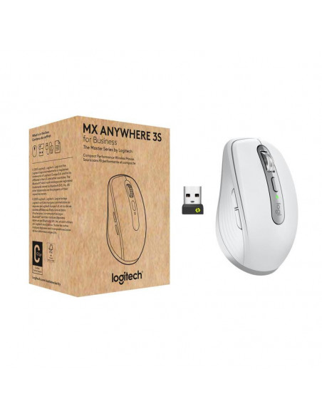 O rato Logitech MX Anywhere 3S For Business, na elegante cor cinzenta-pálido, é o companheiro perfeito para produtividade em qualquer lugar.  Com tecnologia laser de 8000 DPI, conectividade Bluetooth e Wireless, oferece precisão e conforto excecionais.  A bateria de longa duração e a compatibilidade multidispositivo tornam-no ideal para trabalho em movimento.