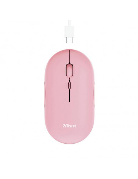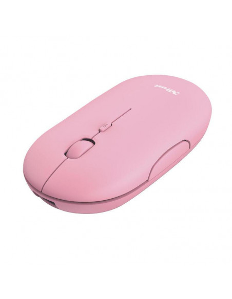 Rato Sem Fio Bluetooth Trust Puck, Recarregável, 1600 DPI, Rosa
