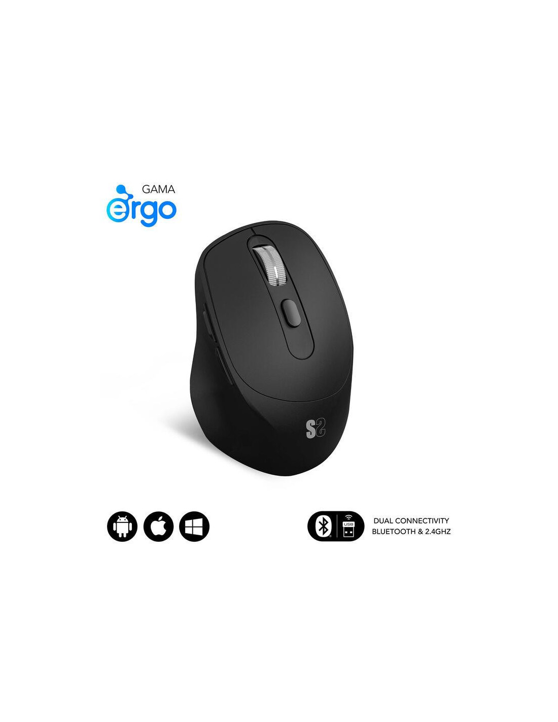 Rato SUBBLIM Curve Ergo Dual: Ergonómico, Sem Fio, Bluetooth, Preto
