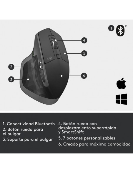 O Logitech MX Master 2S Graphite é um rato sem fios de alta precisão, concebido para profissionais e utilizadores exigentes que procuram um dispositivo ergonómico e com funcionalidades avançadas. O seu design elegante e a sua tecnologia de ponta tornam-no numa escolha ideal para quem procura produtividade e conforto.