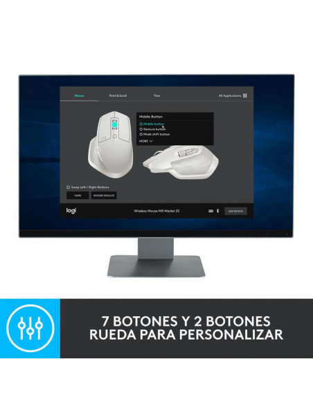 **Precisão e Controlo:** O MX Master 2S utiliza a tecnologia Darkfield High Precision, que permite um rastreamento preciso em praticamente qualquer superfície, incluindo vidro (com uma espessura mínima de 4 mm). O sensor de 4000 DPI garante um controlo preciso e suave, adaptando-se às suas necessidades. O rato dispõe de 7 botões programáveis, que lhe permitem personalizar o seu fluxo de trabalho e aumentar a sua eficiência.