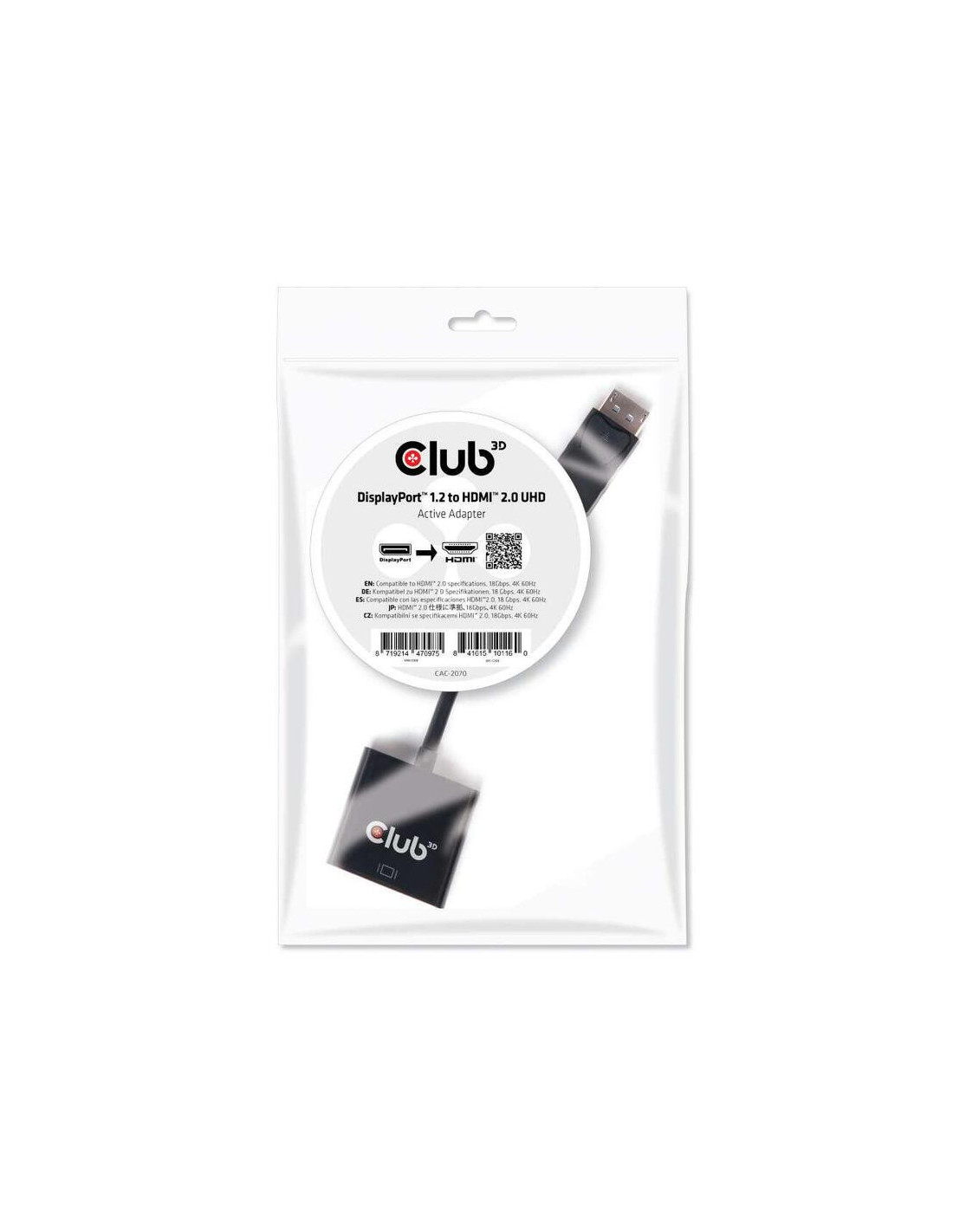 O adaptador possui uma velocidade de transferência de dados de 18 Gbit/s, o que contribui para uma transmissão de sinal rápida e sem atrasos. O seu design negro discreto integra-se facilmente em qualquer ambiente. A Club 3D garante a qualidade do produto com certificações ROHS, FCC e CE EMI.