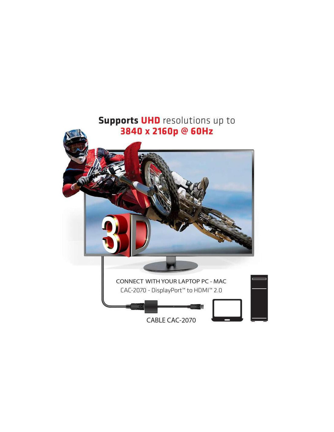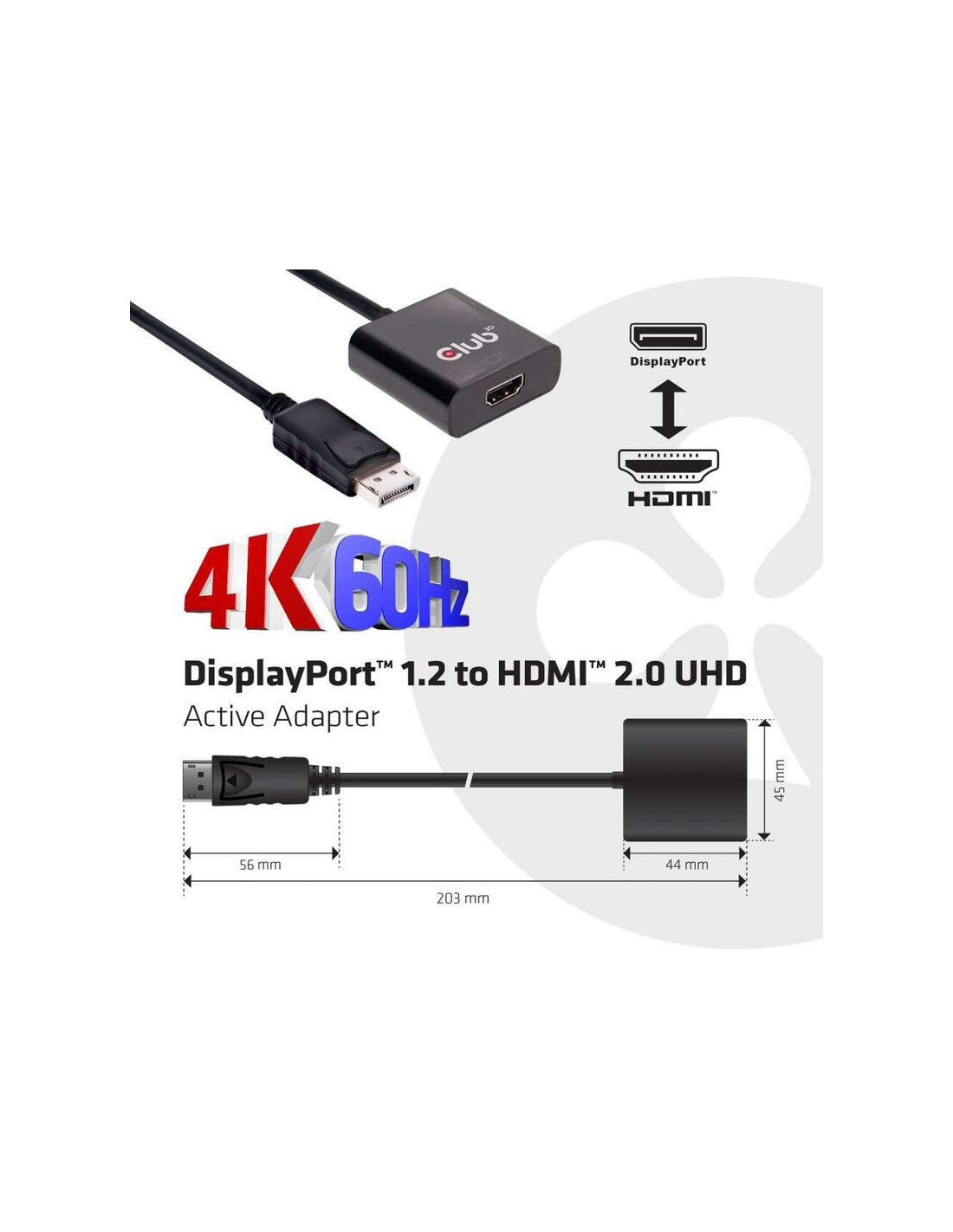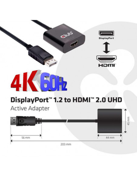 Adaptador Club 3d DisplayPort 1.2 para HDMI 2.0 4K a 60Hz (CAC-2070)