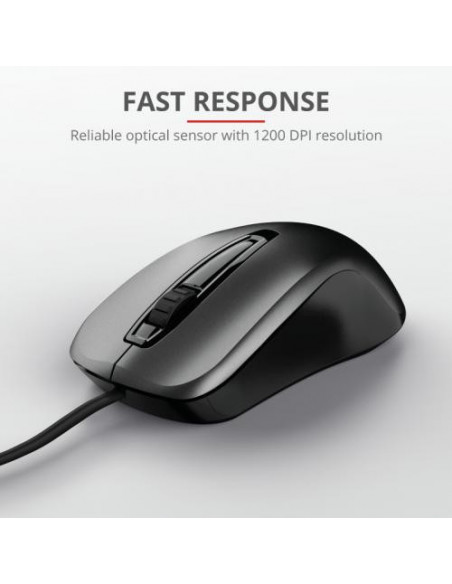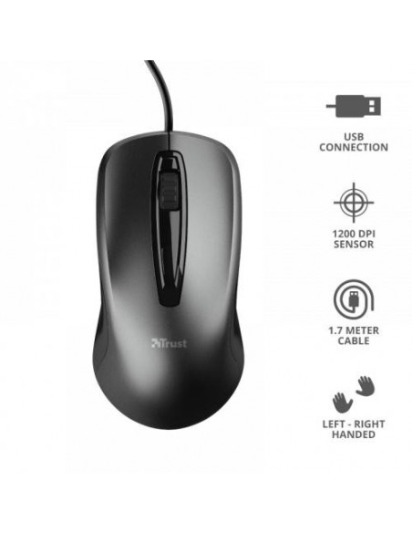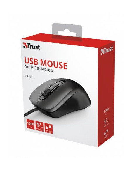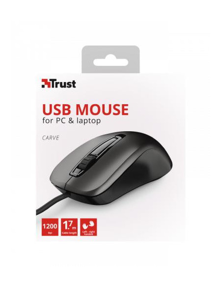 O rato com fio Trust Carve é uma solução simples e eficaz para o seu computador ou portátil. Com um sensor óptico de 1200 DPI, este rato ambidestro oferece precisão e controlo, sendo adequado para utilizadores destros e canhotos. A sua ligação USB garante uma instalação rápida e fácil, e os três botões e a roda de scroll permitem uma utilização confortável.