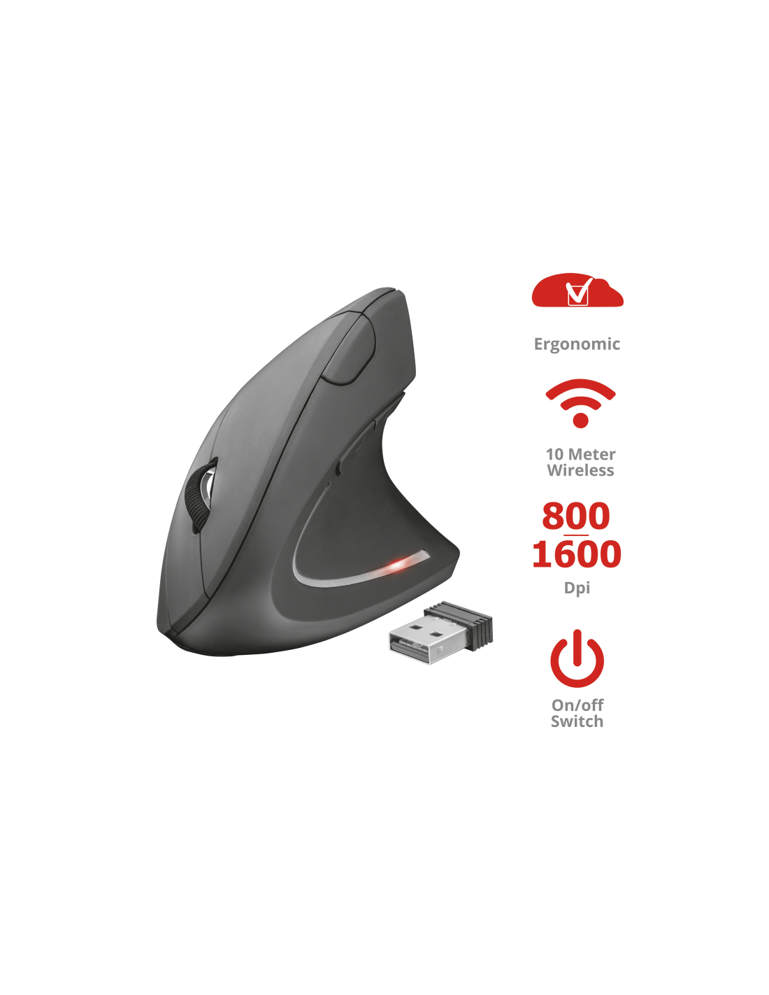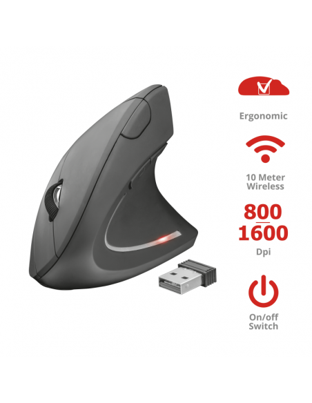 Rato Trust Verto Ergonomic Sem Fios - Ótico 1600 DPI, 6 Botões