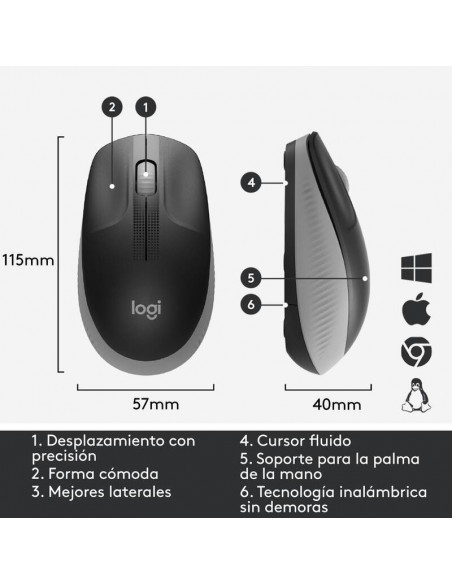 M190 Full-Size Wireless Mouse Wrls Mid Grey - E.D:2308