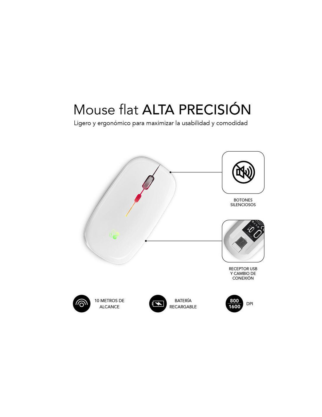 O rato óptico sem fios SUBBLIM SUBMO-LDFLAT2 oferece uma experiência de utilização suave e eficiente, ideal para quem procura um dispositivo confortável e com recursos avançados. A sua conectividade dual, através de Bluetooth 5.1 e radiofrequência (RF) com receptor USB incluído, garante compatibilidade com uma vasta gama de dispositivos, incluindo sistemas Android, iOS, macOS e Windows. O design ultrafino e ergonómico garante conforto mesmo após longos períodos de utilização, enquanto a tecnologia de clique silencioso reduz o ruído para um ambiente de trabalho mais tranquilo.