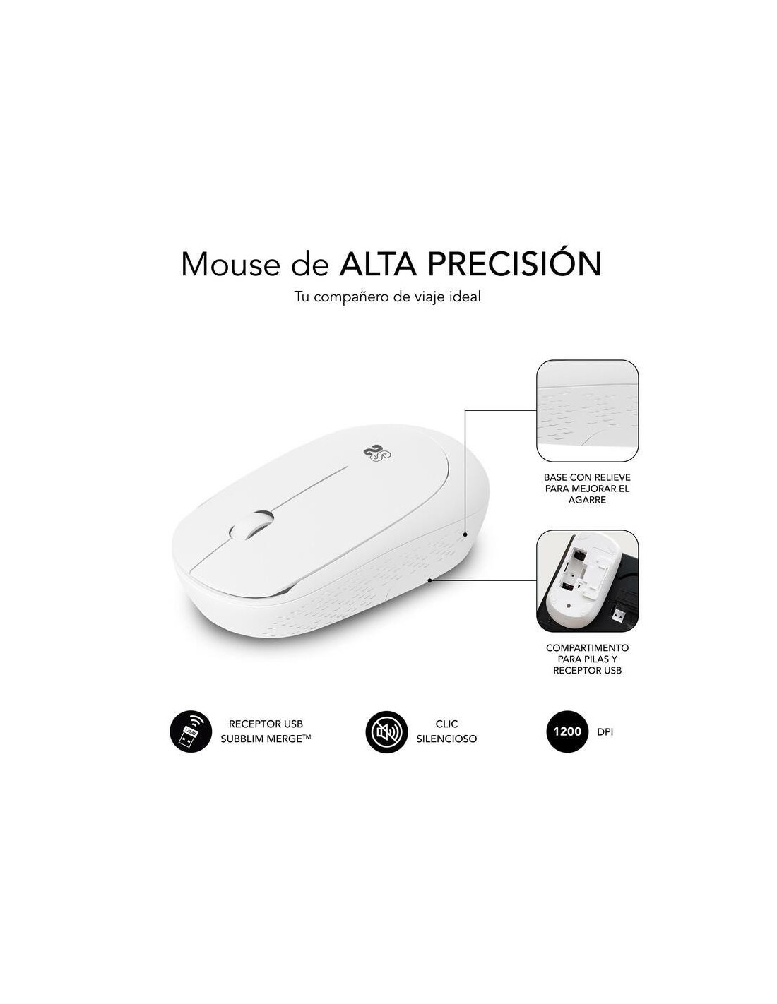 Rato SUBBLIM Business Plus, Sem Fio, Silencioso, 1200 DPI, Branco