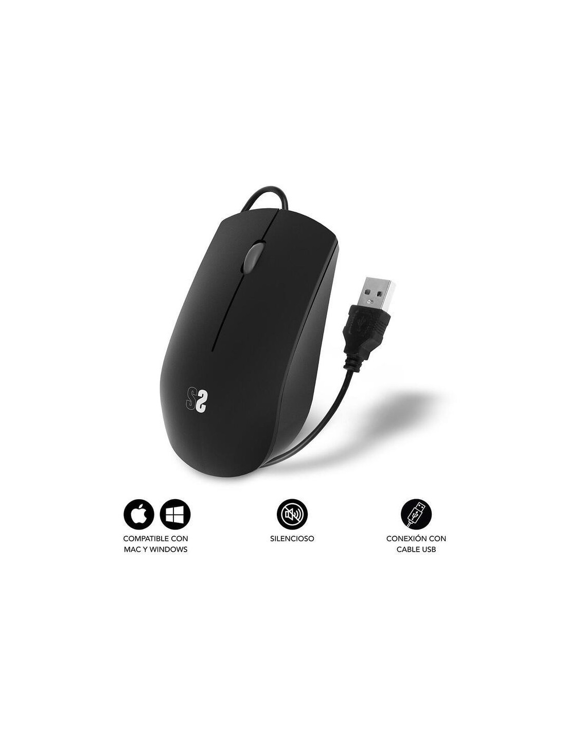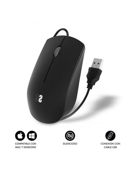 Rato Subblim Business Silencioso com cabo USB, ideal para uso profissional. Design ergonómico e silencioso, com resolução de até 1200 DPI. Conectividade Plug & Play.