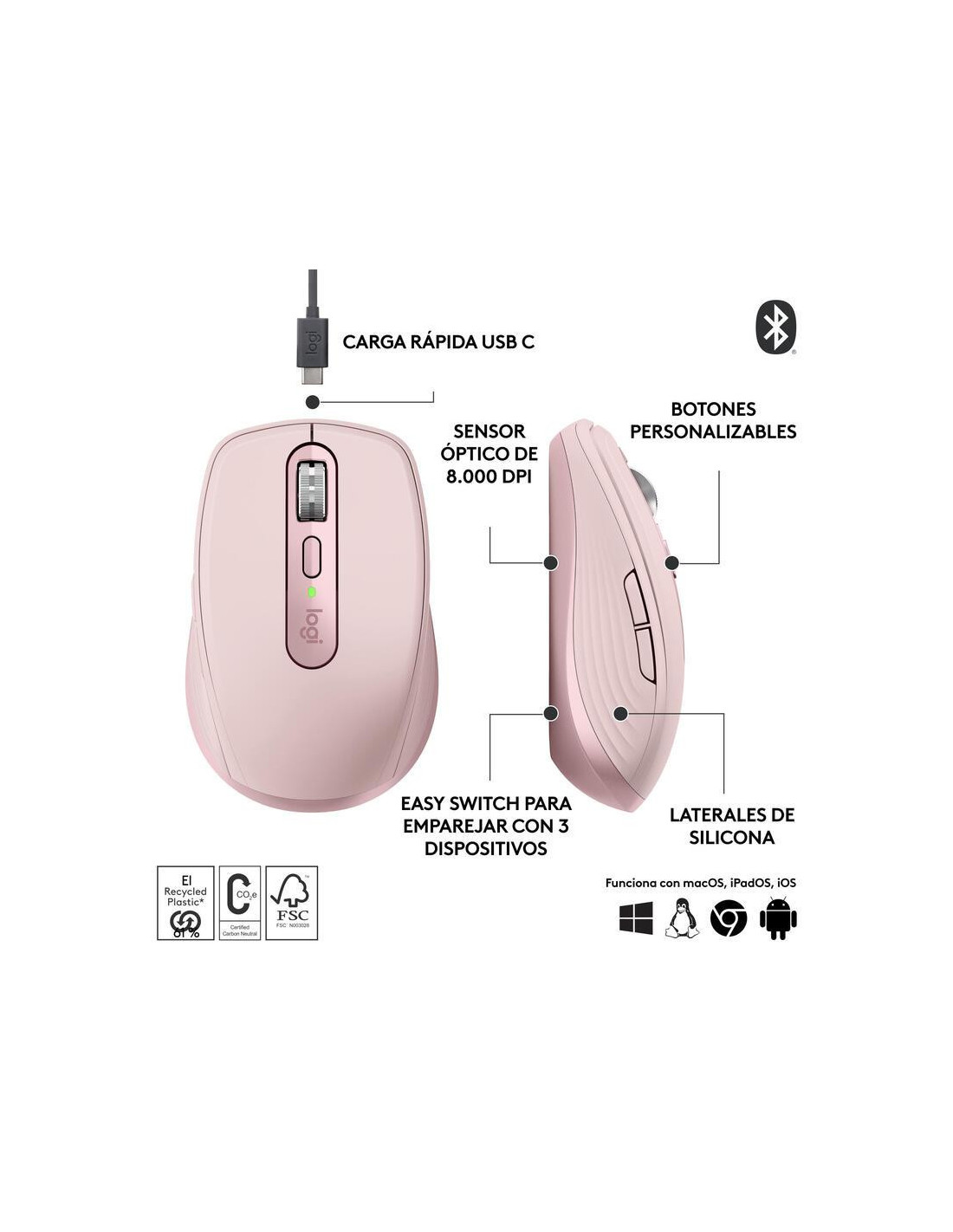 Logitech MX Anywhere 3S - Rato - óptico - 6 botões - sem fios - Bluetooth - rosa