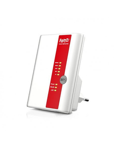 El nuevo FRITZ!WLAN Repeater 450E permite conexiones WiFi estables y rápidas con velocidades de hasta 450 Mbps . El puerto LAN Gigabit permite integrar en la red doméstica dispositivos de red sin función WiFi propia. Gracias a su diseño compacto, el repetidor se puede adaptar a prácticamente cualquier toma de corriente. Los cinco indicadores LED de la intensidad de la señal ayudan a conseguir rápidamente la posición ideal dentro del hogar. Aumenta el alcance de la red inalámbrica en la banda de 2,4 GHz con hasta 450 Mbps. Puerto Gigabit LAN. Conexiones seguras con el estándar WPA2. Configuración rápida y sencilla gracias a la función WPS.