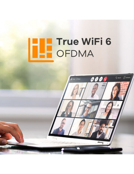 A instalação e gestão do ponto de acesso são facilitadas pela interface web intuitiva e pela possibilidade de atualizar o firmware. A sua compatibilidade com os padrões IEEE 802.11a, b, g, n, ac e ax garante interoperabilidade com uma vasta gama de dispositivos. O dispositivo também inclui funcionalidades como MIMO (Multi-User MIMO), garantindo maior eficiência e velocidade em redes com múltiplos utilizadores. O receptor de alta sensibilidade (-99 dBm) assegura uma conexão estável, mesmo em áreas com sinal fraco.