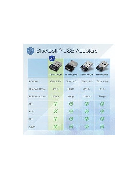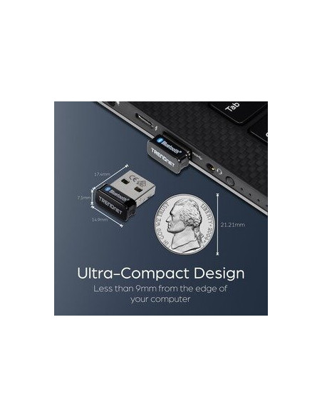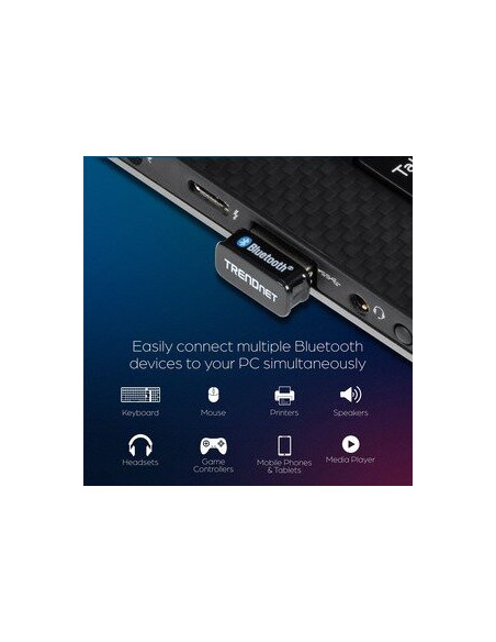Adaptador Bluetooth Trendnet TBW-110UB, Bluetooth 5.0, USB 2.0, para computador, teclado ou auscultadores.  Oferece uma ligação sem fios estável e rápida.