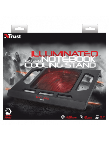 Trust 21962. Tamanho máximo de ecrã: 40,6 cm (16"), Número de ventiladores incluídos: 1 unidade(s). Cor do produto: Preto, Cor de iluminação: Azul. Interface do host: USB