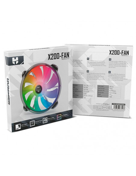 O ventilador Nox Hummer X200 ARGB é a solução perfeita para quem busca um equilíbrio entre desempenho, estética e silêncio.  Com um diâmetro de 200 mm, este ventilador proporciona um fluxo de ar potente e eficiente, mantendo a temperatura do seu PC sob controlo, mesmo durante as sessões de gaming mais intensas.