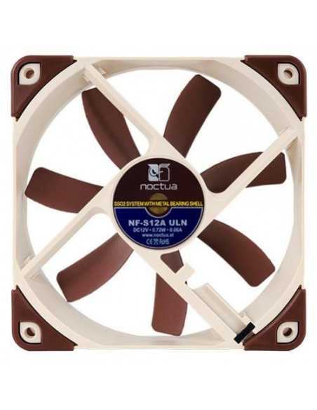 O Noctua NF-S12A-ULN é a terceira geração de ventiladores silenciosos para caixas da aclamada série S12 da Noctua.  Este ventilador de 120mm utiliza um design de pás otimizado com Anti-Stall Knobs, que reduz o fenômeno de separação do fluxo de ar, especialmente em situações de alta impedância.  Este design, combinado com o quadro Advanced Acoustic Optimisation AAO (Optimização Acústica Avançada), resulta num ventilador extremamente silencioso e eficiente, com um índice de fluxo de ar/ruído significativamente melhorado em relação aos seus antecessores.