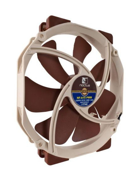 O NF-A15 é um ventilador silencioso de 140 mm de alta qualidade, com moldura redonda que cumpre o padrão Advanced Acoustic Optimisation AAO (Optimização Acústica Avançada) da Noctua. A moldura do NF-A15 possui furos de montagem de 120 mm (espaçamento de 105 mm) e foi alargada para 150 mm de largura, para proporcionar um desempenho superior com dissipadores de CPU de gama alta. Graças a características de design aerodinâmico sofisticado, como os Flow Acceleration Channels (Canais de Aceleração de Fluxo), o NF-A15 aumenta o já reconhecido desempenho silencioso e premiado do NF-P14. O PWM IC, especialmente projetado pela Noctua para controlo de velocidade totalmente automático, e os rolamentos SSO2 garantem uma operação suave e excelente estabilidade a longo prazo. Com cablagem modular, um adaptador de redução de ruído e 6 anos de garantia do fabricante, o NF-A15 é uma excelente opção para as mais altas exigências.