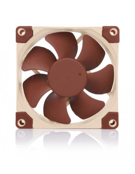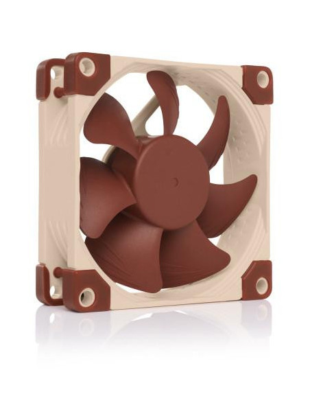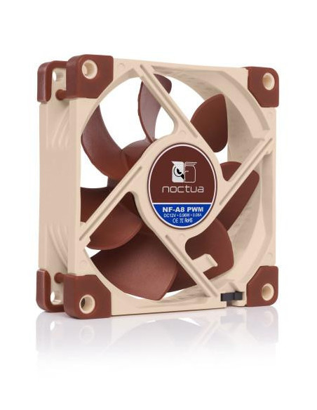 Ventilador Noctua NF-A8 PWM de 80x80x25mm, com velocidade ajustável entre 450 e 2200 RPM. Oferece um fluxo de ar de 55,5 m³/h com um nível de ruído que varia entre 13,8dB(A) (velocidade baixa) e 17,7dB(A) (velocidade alta). Ideal para refrigeração de computadores, possui conexão de 4 pinos. Possui cores bege e castanho.