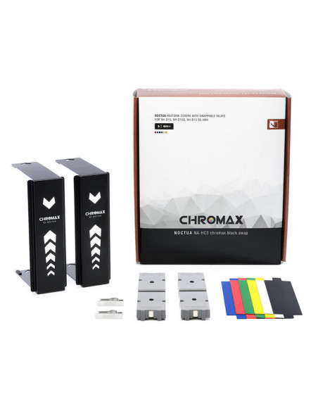 As tampas de dissipador, Chromax  NA-HC3 são um acessório adicional para os premiados coolers NH-D15, NH-D15S e NH-D15 SE-AM4 da Noctua. Feitas de alumínio de alta qualidade com acabamento de revestimento em preto e incluindo inlays intercambiáveis de cores variadas, elas permitem que os usuários personalizem o seu cooler.