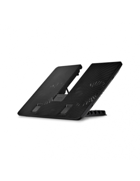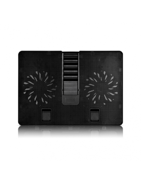 Base refrigeradora Deepcool U Pal, em cor preta, concebida para portáteis até 15,6 polegadas. Inclui dois ventiladores de 140mm para uma refrigeração eficiente. Conecta-se via USB 3.0, operando a 1000 RPM. Ideal para manter o seu portátil fresco durante longas sessões de uso.