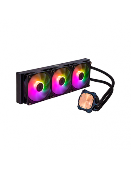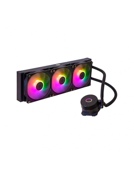 Sistema de arrefecimento líquido Cooler Master MasterLiquid MLW-D36M-A18PZ-R1, com radiador de 360mm e iluminação ARGB.  Concebido para manter a CPU a uma temperatura ideal, mesmo sob carga elevada. Inclui três ventoinhas para um fluxo de ar otimizado. Compatível com diversas placas-mãe.
