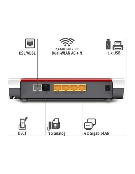 características especiales MU-MIMO, interruptor de activación / desactivación de WLAN, vectorización VDSL2 (perfil 7a), VDSL2-SuperVectoring (perfil 35b), TPC / DFS, VoIP, admite módem celular (3G / 4G), transferencia VPN (IPSec), IPv6, DLNA, malla (banda común)