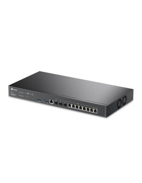O TP-Link Omada ER8411 é um router VPN com portas Gigabit Ethernet e tecnologia 10/100/1000Base-T(X). Oferece diversas funcionalidades NAT, incluindo One-to-One NAT, Multi-Net NAT, Virtual Server, Port Triggering, NAT-DMZ e suporte para FTP/H.323/SIP/IPSec/PPTP. Possui 256MB de memória flash e 4096MB de memória DDR4. Cor preta. Garantia de 24 meses.