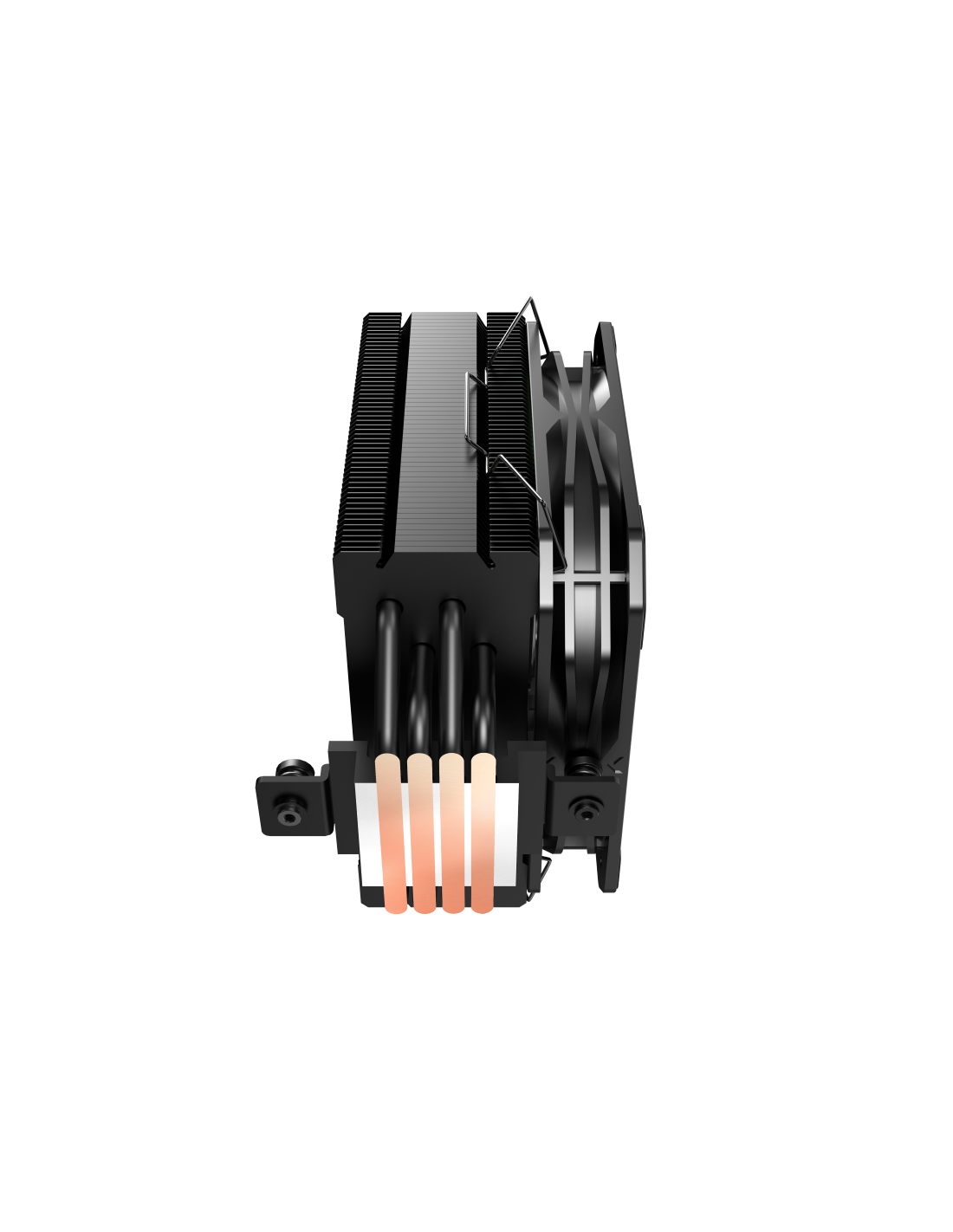 Os heatpipes entram em contato direto com a CPU, absorvendo o calor de forma rápida e eficiente. O calor é transferido para as aletas de alumínio, que são resfriadas pelo ventilador de 130mm incluído. O ventilador opera com um fluxo de ar de até 81 CFM, mantendo um nível de ruído baixo, entre 18 e 28.6 dBA.