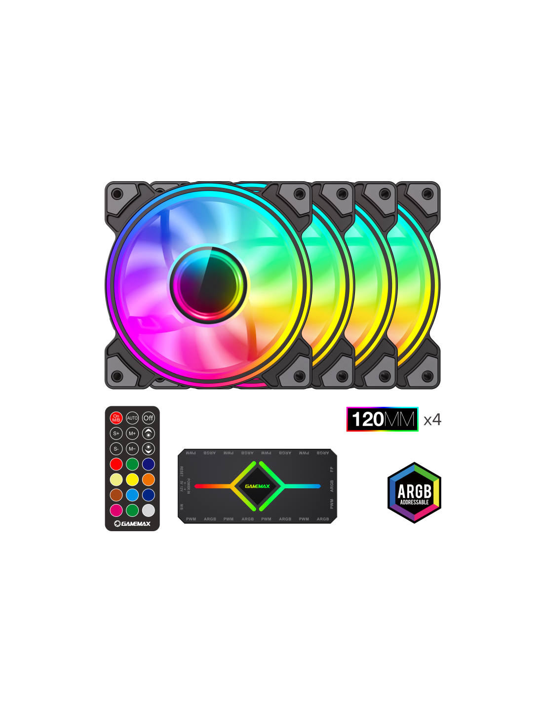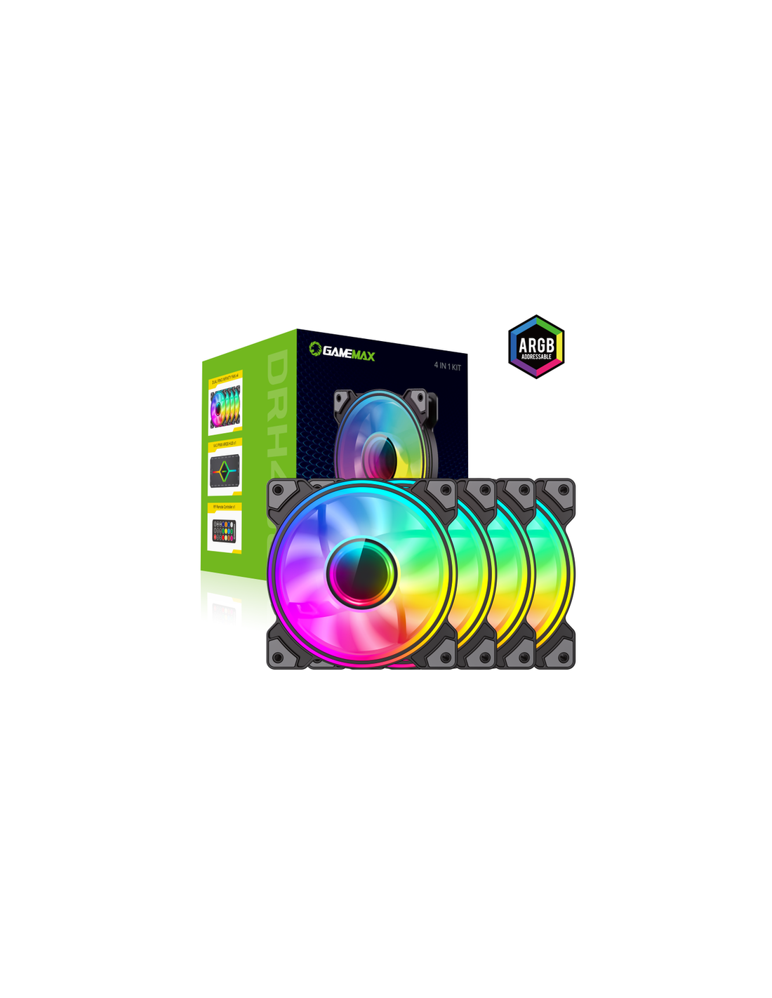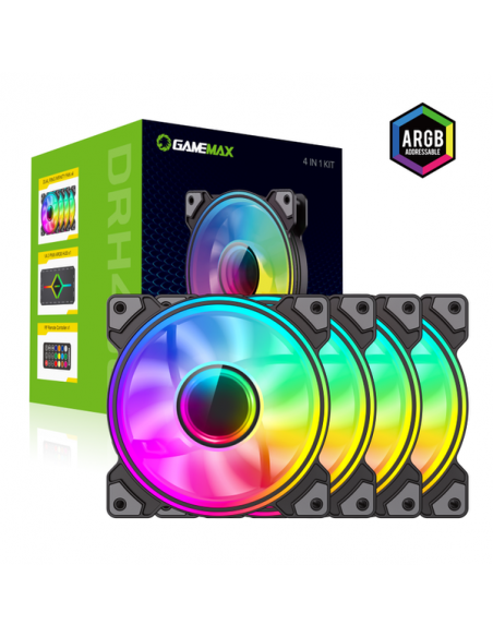 Kit Ventoinhas Gamemax DRH400 4x120mm aRGB, Hub, PWM, Gaming
