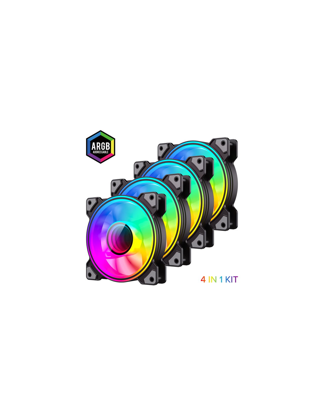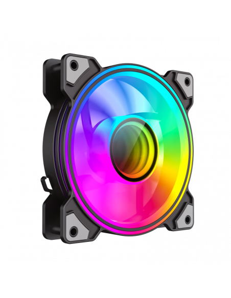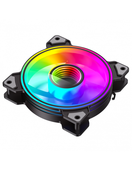 Cada ventoinha aRGB de 120mm possui um design otimizado para maximizar o fluxo de ar e a dissipação de calor, contando com um controlador de velocidade inteligente, que ajusta a rotação das ventoinhas (600 ~ 1200 ± 10% RPM) dependendo da temperatura, reduzindo o ruído e aumentando a eficiência. O controlo da velocidade pode ser efetuado pelo controlo remoto incluído, o que oferece flexibilidade e comodidade.