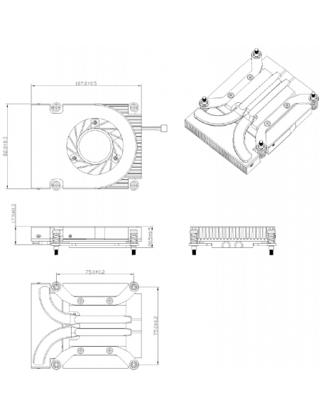 Com uma altura de apenas 17mm, este cooler é ideal para sistemas onde o espaço é limitado. As dimensões compactas (107x82x17mm) facilitam a instalação em gabinetes menores. O seu design é otimizado para um fluxo de ar eficiente, garantindo que o calor seja dissipado de forma eficaz.