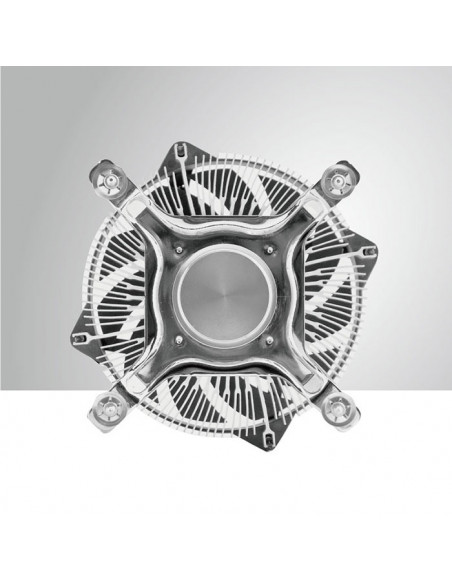 Este cooler é compatível com processadores Intel com um TDP (Thermal Design Power) de até 65W, tornando-o adequado para uma ampla gama de CPUs. A ventoinha incorpora luzes LED, adicionando um elemento estético ao seu sistema. O conector PWM de 4 pinos facilita a ligação à motherboard para controlo preciso da velocidade.