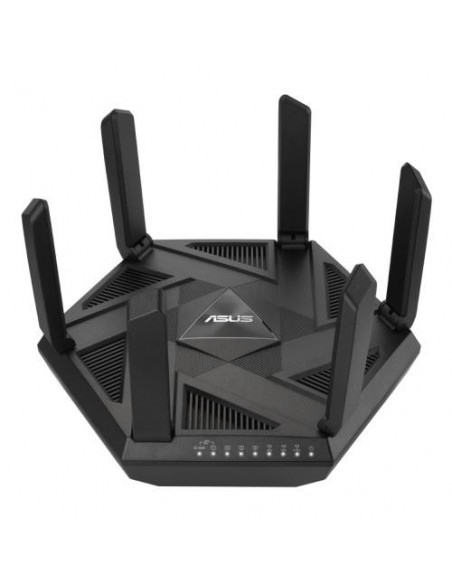 O router Asus RT-AXE7800 é uma solução de rede doméstica avançada, projetada para fornecer uma experiência de conectividade rápida e confiável. Este router tri-banda Wi-Fi 6E (802.11ax) oferece velocidades de transferência de dados sem fio de até 4804 Mbps, distribuídas pelas bandas de 2.4 GHz (574 Mbps), 5 GHz (4804 Mbps) e 6 GHz (2402 Mbps).  A tecnologia MU-MIMO permite que o router comunique com múltiplos dispositivos simultaneamente, garantindo alta performance mesmo com uma rede congestionada. O suporte para tecnologias como a Intelligent Mesh facilita a criação de uma rede Wi-Fi Mesh em casa, para cobertura máxima.  O router dispõe de 5 portas Ethernet LAN com velocidades de 10/100/1000 Mbps, permitindo ligação por cabo de computadores e outros dispositivos. Um porto USB permite conectar dispositivos de armazenamento externo para partilha de ficheiros na rede.  O RT-AXE7800 inclui um servidor VPN (IPSec, OVPN, PPTP), permitindo uma navegação segura e privada. Outras funcionalidades incluem QoS para priorização de tráfego, suporte para vários algoritmos de segurança (WPA, WPA2, WPA3, WPS), firewall, controle parental, e acesso de convidados. O router é compatível com o Amazon Alexa, podendo ser controlado por comandos de voz. Possui um processador quad-core a 1700 MHz com 512 MB de memória interna e 256 MB de memória Flash.  O seu design inclui 6 antenas externas e LEDs indicadores de estado. A alimentação é feita através de uma fonte de alimentação AC (110-240V, 50-60Hz). Inclui cabos LAN (RJ-45), adaptador AC, cartão de garantia e guia de configuração rápida.