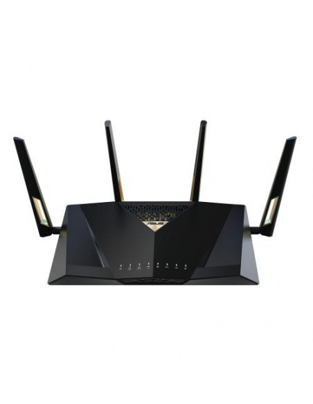 O router ASUS RT-BE88U é um router sem fios de alta performance, projetado para atender às necessidades de utilizadores domésticos e profissionais com elevados requisitos de velocidade e segurança. Este modelo de topo de gama utiliza a tecnologia Wi-Fi 7 (802.11be) de banda dupla (2,4 GHz e 5 GHz), oferecendo velocidades de transferência de dados sem fios até 5764 Mbps. A conectividade por cabo é garantida através de nove portas Ethernet LAN (RJ-45), com velocidades de 1000, 2500 e 10000 Mbps (10 Gigabit Ethernet), e uma porta SFP+ para conectividade de fibra óptica. O dispositivo também inclui uma porta USB 3.2 Gen 1 (3.1 Gen 1) para ligação de dispositivos externos, como unidades de armazenamento.
